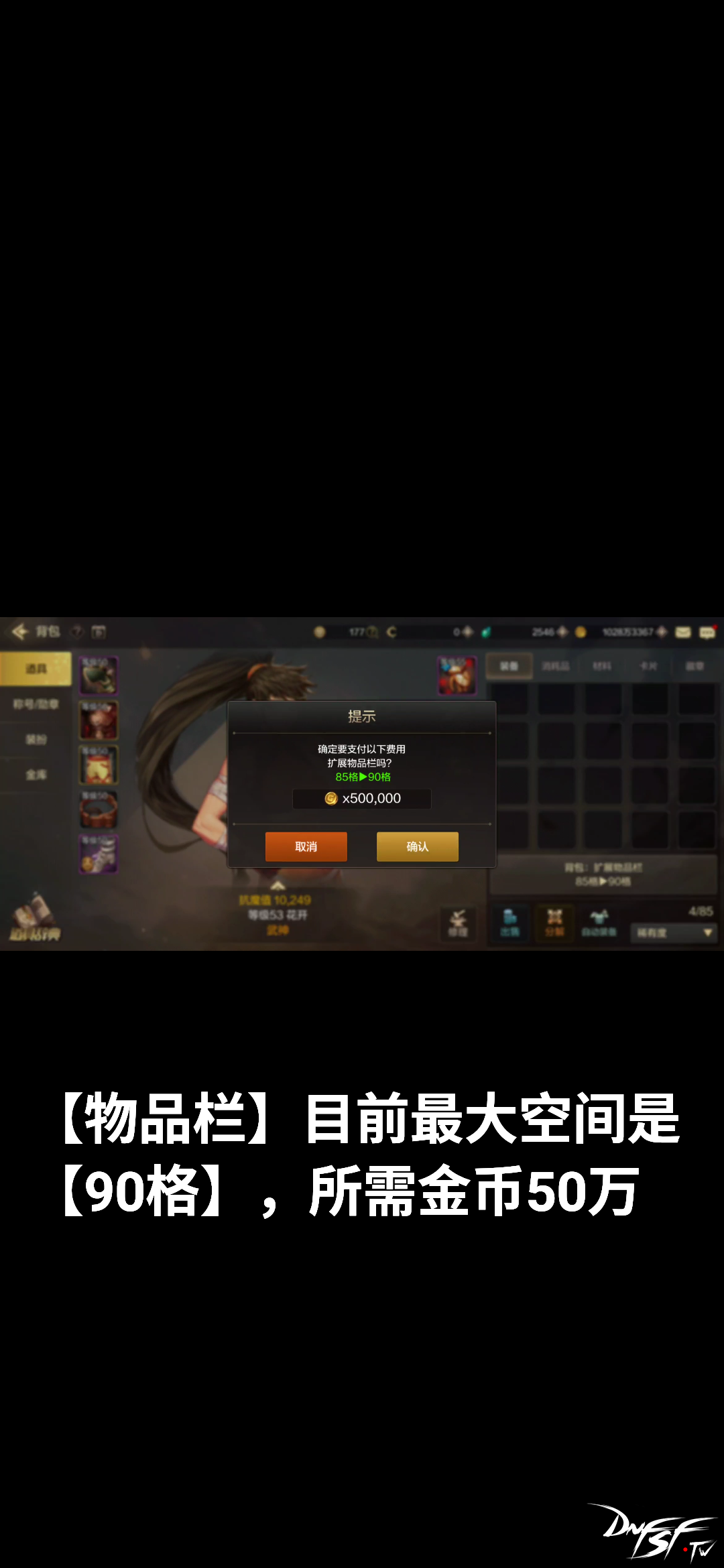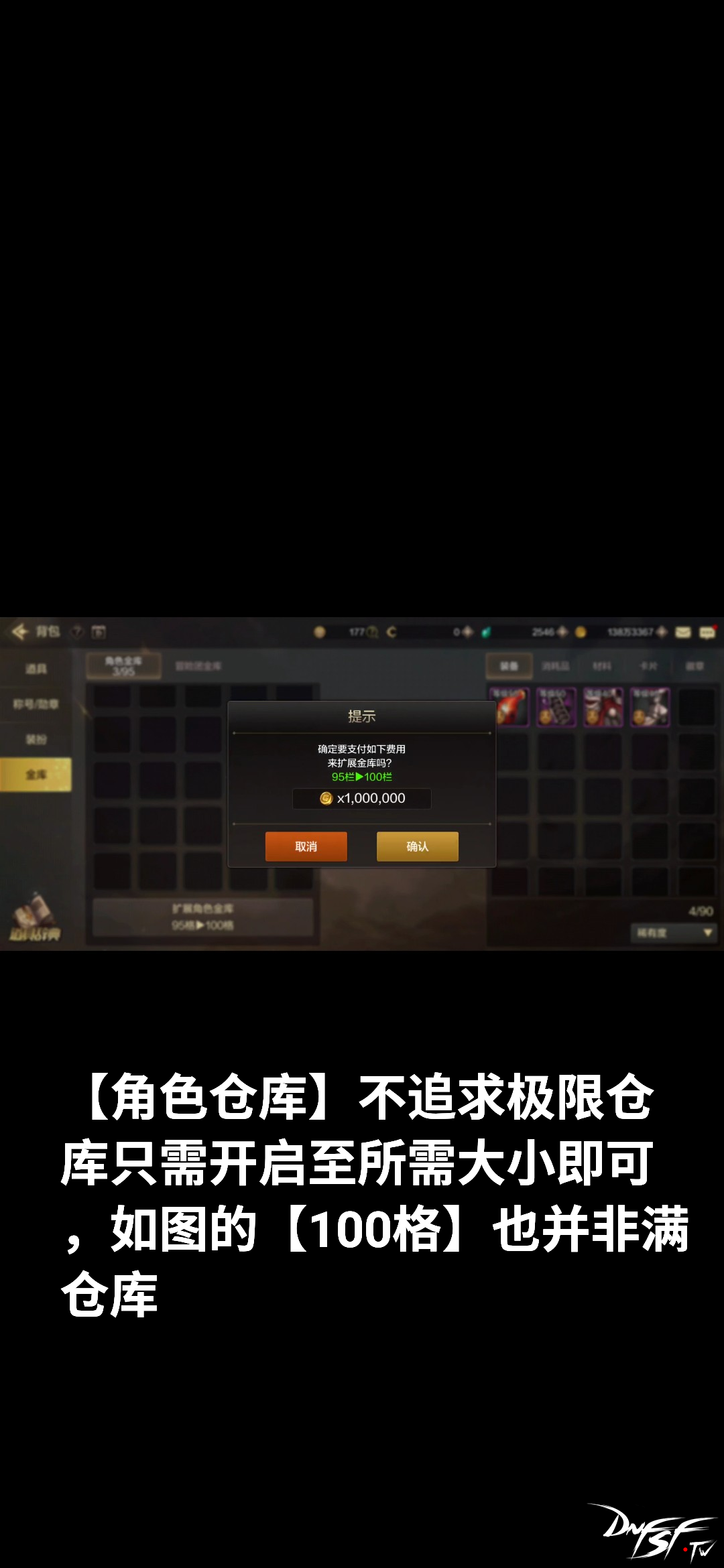 dnf手游物品栏、角色仓库、公共仓库最大空间格数