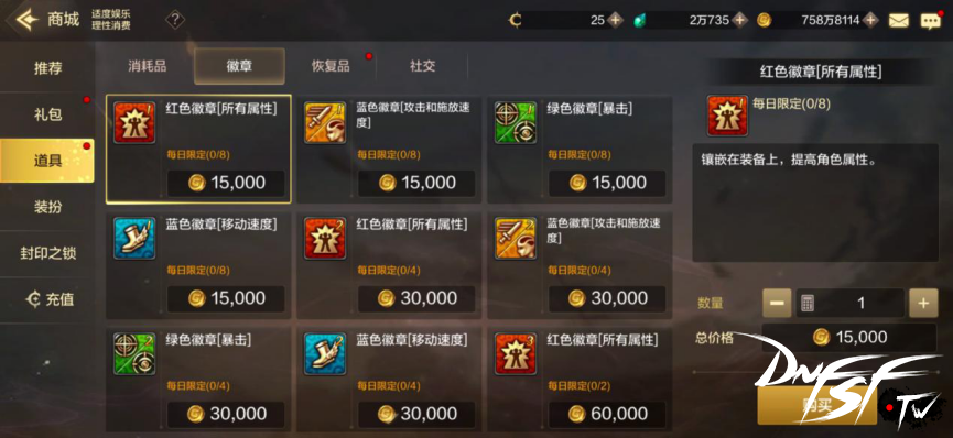 最为稳定的提升方式!稀有~神器装备可镶嵌一枚徽章,史诗装备可镶嵌两枚徽章。徽章可以通过以商城购买为主的方式获得。